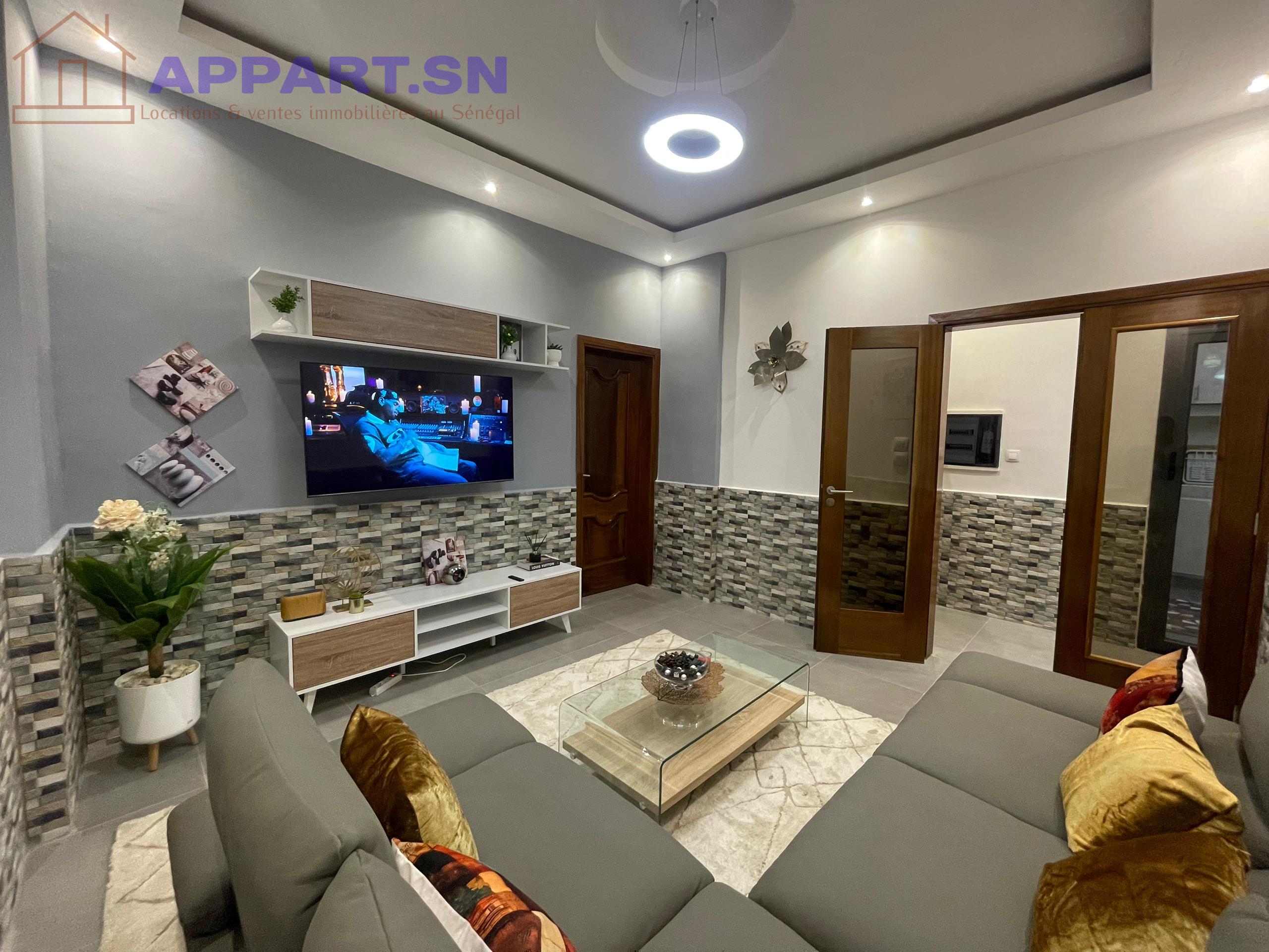 APPARTEMENT MEUBLÉ F3 À LOUER MAMELLES Appartement au RDC entièrement climatisé à louer à la Cité Mbackiou Faye composè de 2chambres dont 1 avec sde 1 sde visiteur -cuisine équipée - 1 salon avec table à manger et espace familiale wifi machine à laver femme de ménage -gardiennage H24 Nuitée 50 000F CFA hors électricité