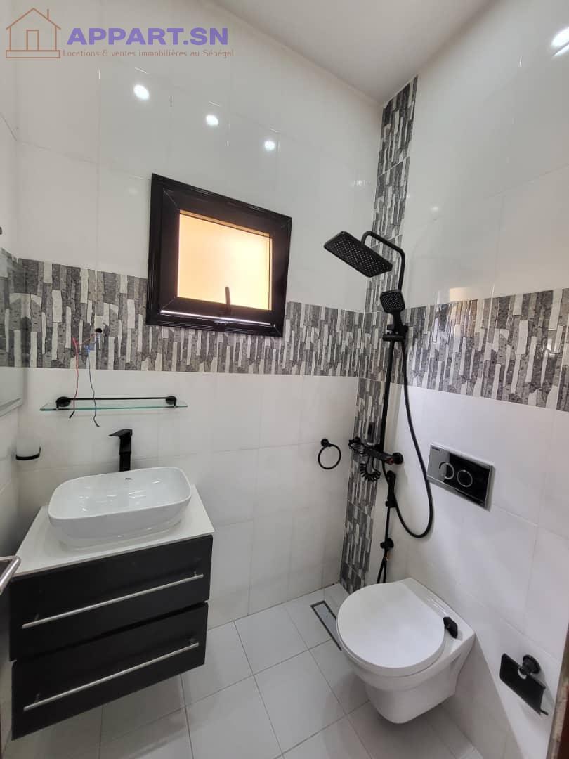 Un bel appartement à Ouest Foire dans un immeuble tout neuf composé de deux chambres dont une avec salle de bain, d'un salon avec balcon, d'un espace familiale, d'une cuisine avec placards et d'une toilette visiteurs.