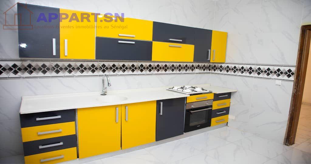 Appartement F4 à louer Cité Mbackiou Faye des MAMELLES il est composé de 3 chambres chacune avec sde 1 salon avec balcon , 1 toilette visiteurs ,1 cuisine semi équipée