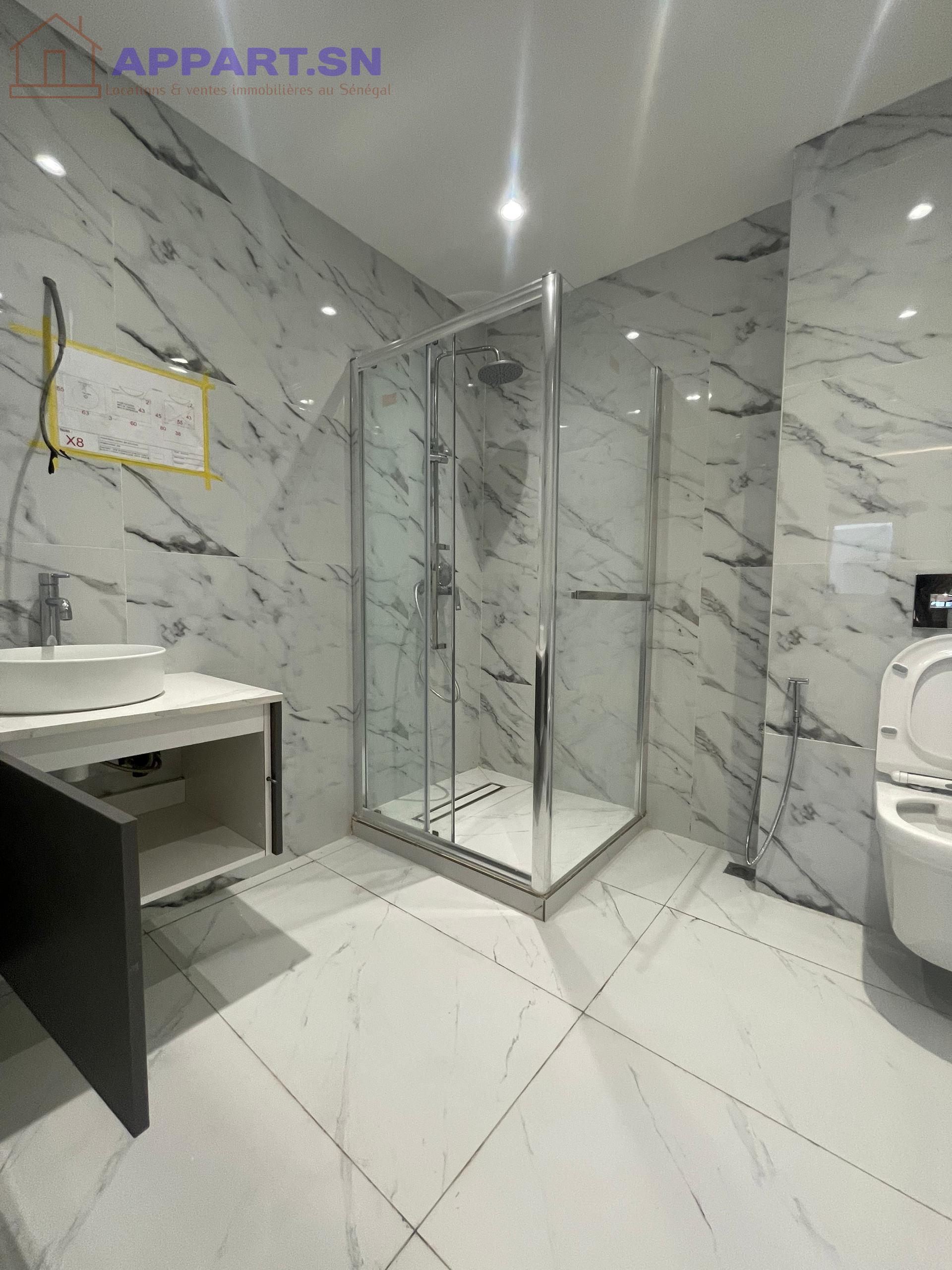 Appartement F5 entièrement climatisé à louer aux Almadies il est composé de 4 chambres chacune avec sde et rangement 1 grand salon avec balcon cuisine semi équipée 1 sde visiteurs buanderie , salle de sport, piscine ascenseur groupe électrogène et gardiennage H24