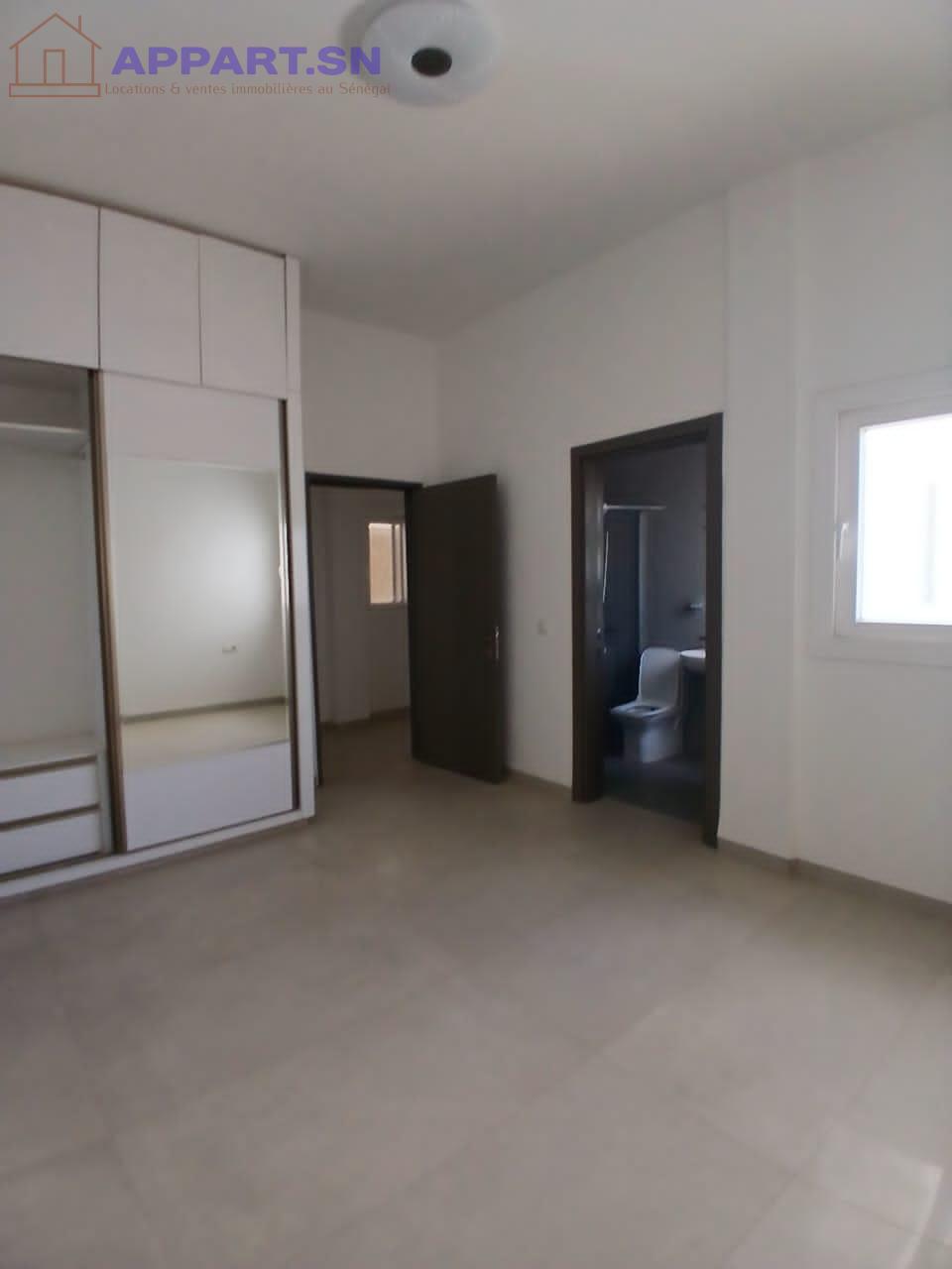 3 chambres avec leurs salles de bains,un très grand Salon avec balcon,une cuisine equipèe avec une buanderie et toilette domestic,et une toilette visiteur dont les commoditès sont parking,ascenseur,gardiennage H24 ,une salle de sport