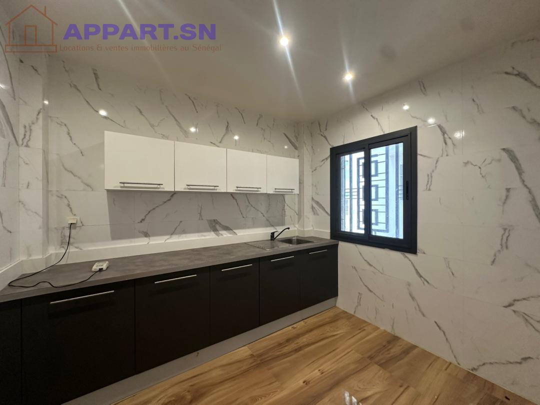Appartement F3 au 2e étage à louer Cité Mbackiou Faye Mamelles il est composé de 2 chambres dont 1 avec sde 1 entrée salon avec balcon 1cuisine et sde visiteurs gardiennage H24